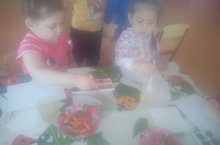 В преддверии празднования «Дня Победы», дети второй группы раннего возраста «Сказка» рисовали одноразовыми вилками, отпечатками из овощей «Праздничный салют».