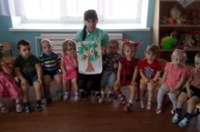 В группе раннего возраста №1 «Затейники» в режимный момент совместно с воспитателем Арслановой А.И. дети рисовали дерево, используя нетрадиционную технику - рисование ладошками.