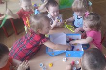 В группе раннего возраста №1 «Затейники» в режимный момент дети играли в дидактическую игру «Собери бусы»