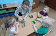 В ходе игровой ситуации с детьми второго года жизни, группы первого раннего возраста «Звездочка», мы с ребятами в игровой форме рассмотрели домашних животных. Ребята сконструировали домик из деревянного лего для домашнего животного. Дети были активны...