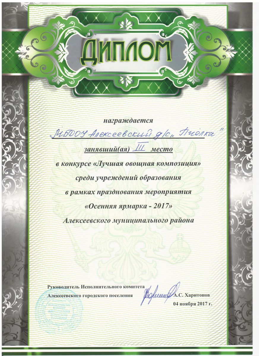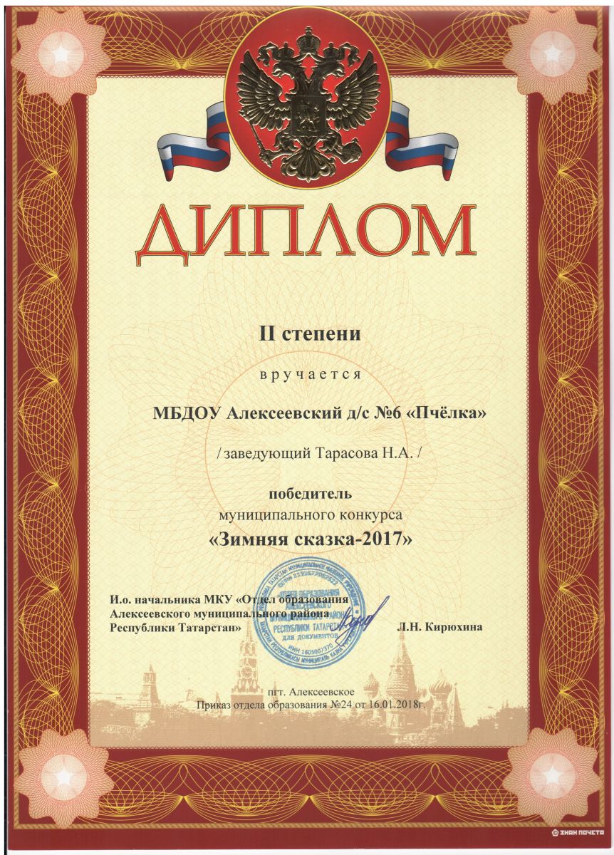 Диплом II степени победитель муниципального конкурса "Зимняя сказка - 2017"