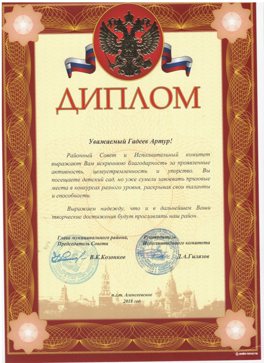 Диплом победителя в республиканском фестивале "Сайяр"
