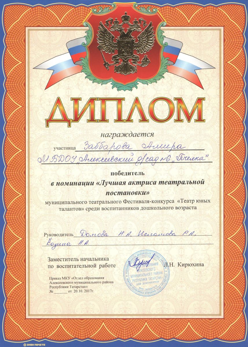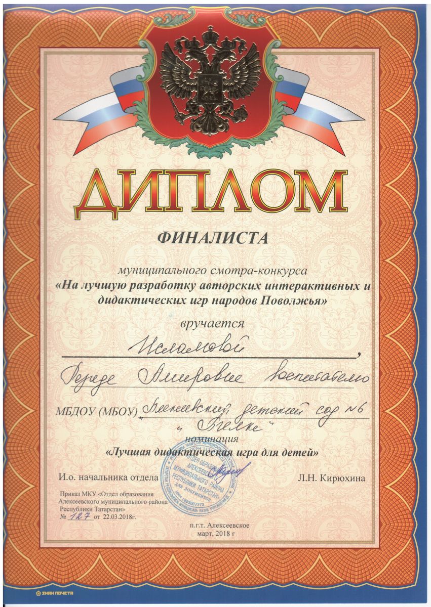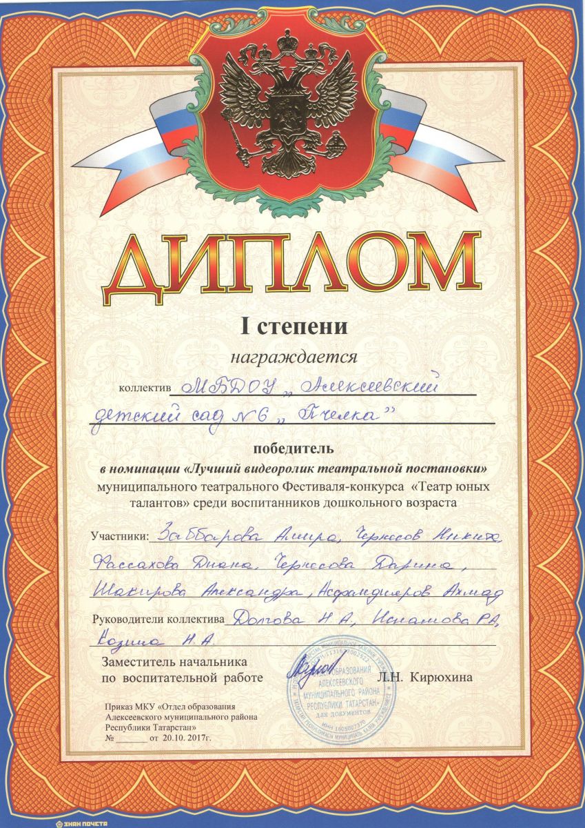 | Короткое название: | МБДОУ «Алексеевский детский сад №6 «Пчелка» Алексеевского муниципального района Республики Татарстан |