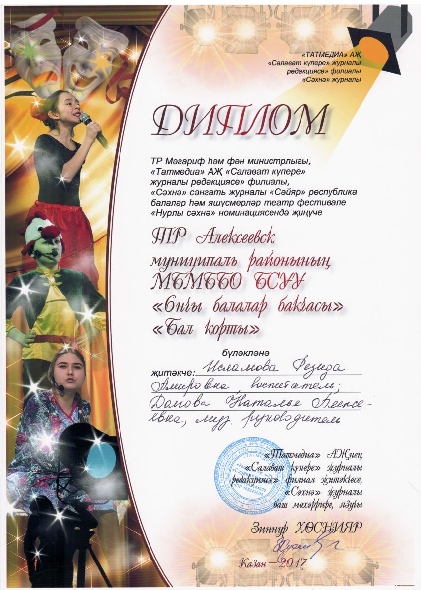 Диплом участника в республиканском фестивале "Сайяр"