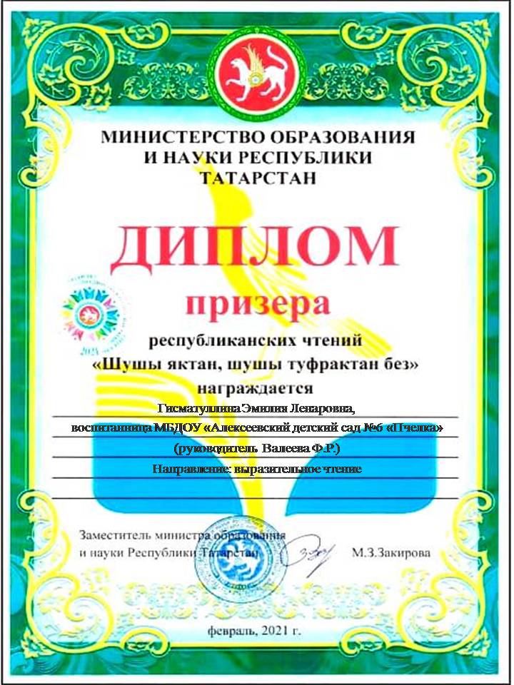 Диплом призера республиканских чтений "Шушы яктан, шушы туфрактан без", 2 участник.
