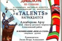 V Открытый Республиканский фестиваль-конкурс вокалистов - исполнителей на иностранном языке «TALENTS» 15.04.2015