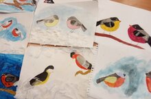 Зимой, особенно после того, как выпадет снег, яркие пятна птичьего оперения становятся особенно хорошо заметными на белом фоне. Наиболее частыми гостями в это время становятся синицы и снегири. На очередном занятии творческого объединения «Мир идей» (педагог Меркулова А.Г.) учащиеся занимались рисованием с элементами аппликации.