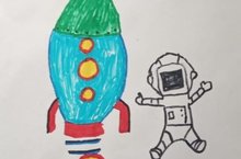 Обучающийся объединения «Мир красок» Ислам С. нарисовал рисунок к празднику и поздравляет всех жителей поселка Алексеевское с Днем Космонавтики.