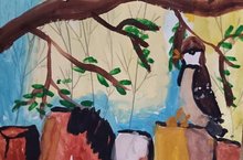Обучающиеся объединения «Мир красок» под руководством Гатиной С.В. продолжают дистанционно изучать тему «Весна» и выполнили следующее задание, нарисовали весенний пейзаж. -