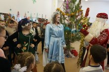 Нарядная красавица елка встречала своих гостей в объединении «Радуга творчества». Музыка, красочное оформление, веселые конкурсы, хороводы вокруг елки создавали у детей ощущение праздника, заряжали весельем и радостным предвкушением встречи со сказочными героями, Дедом Морозом и Снегурочкой. Педагог Шерстобитова Оксана Александровна создала для ребят атмосферу сказки. Дети смогли окунуться в праздничную атмосферу приключений, поучаствовать в интересных конкурсах. С появлением Деда Мороза начался настоящий праздник с песнями и танцами, хороводами вокруг ёлки.