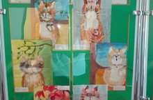 Уже в первый день занятий ученики создают свои первые картины. Мы работаем с цветом, пространством, рисуем в разных техниках разнообразные сюжеты. По этой методике дети нарисовали серию картин «Коты и котики» и оформили выставку. Рисунки получились не похожие друг на друга, у каждого свой котик, с индивидуальным характером.