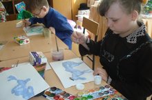 В объединении «Мир красок» под руководством Гатиной С.В. прошли интересные занятия на развитие творчества детей. Обучающиеся познакомились с новой техникой - рисование нитью. Сначала дети нарисовали сказочные цветы. Нитка опускается в краску, затем выкладывается на лист бумаги спиралью и вытягивается на себя, получаются сказочные цветы, которые дети дорисовывают краской и кистью. На другом занятии задание усложнилось, дети выкладывали нить на бумаге, прикрывали бумажным листом, вытягивали нить и из получившегося изображения придумывали сюжет. У кого- то получилась собачка с цветком, жираф в пустыне, веселый клоун, подводная лодка в подводном царстве. Дети разбудили свое творчество и получили массу положительных эмоций.