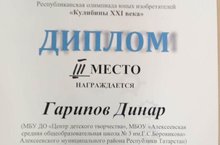 30 апреля 2019 года на базе МБУДО «Центр детского творчества «Галактика» Кукморского муниципального района прошел Очный этап республиканской конференции исследовательских работ обучающихся «Моё Я в Большой Науке» им. Р.И. Утямышева, в котором приняли участие и наши обучающиеся - это Рыжикова Олеся, обучающаяся объединения «Ручное творчество» (руководитель Елдашева Н.И.) и Гарипов Динар, обучающийся объединения «Юный техник» (руководитель Галеев Р.Р.). Наши участники награждены Грамотами за актуальность и практическую значимость исследовательской работы в секциях «Декоративно-прикладное творчество» и «Техническое творчество».