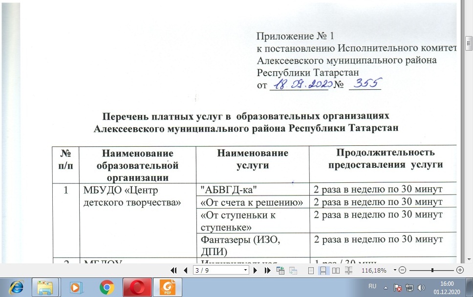 Постановление об оказании платных услуг на 2020-2021 учебный год