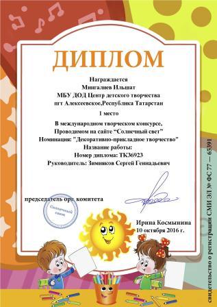 Международный_творческий_конкурс "Солнечный свет", Мингалиев Ильшат, 1 место, октябрь 2016 г.