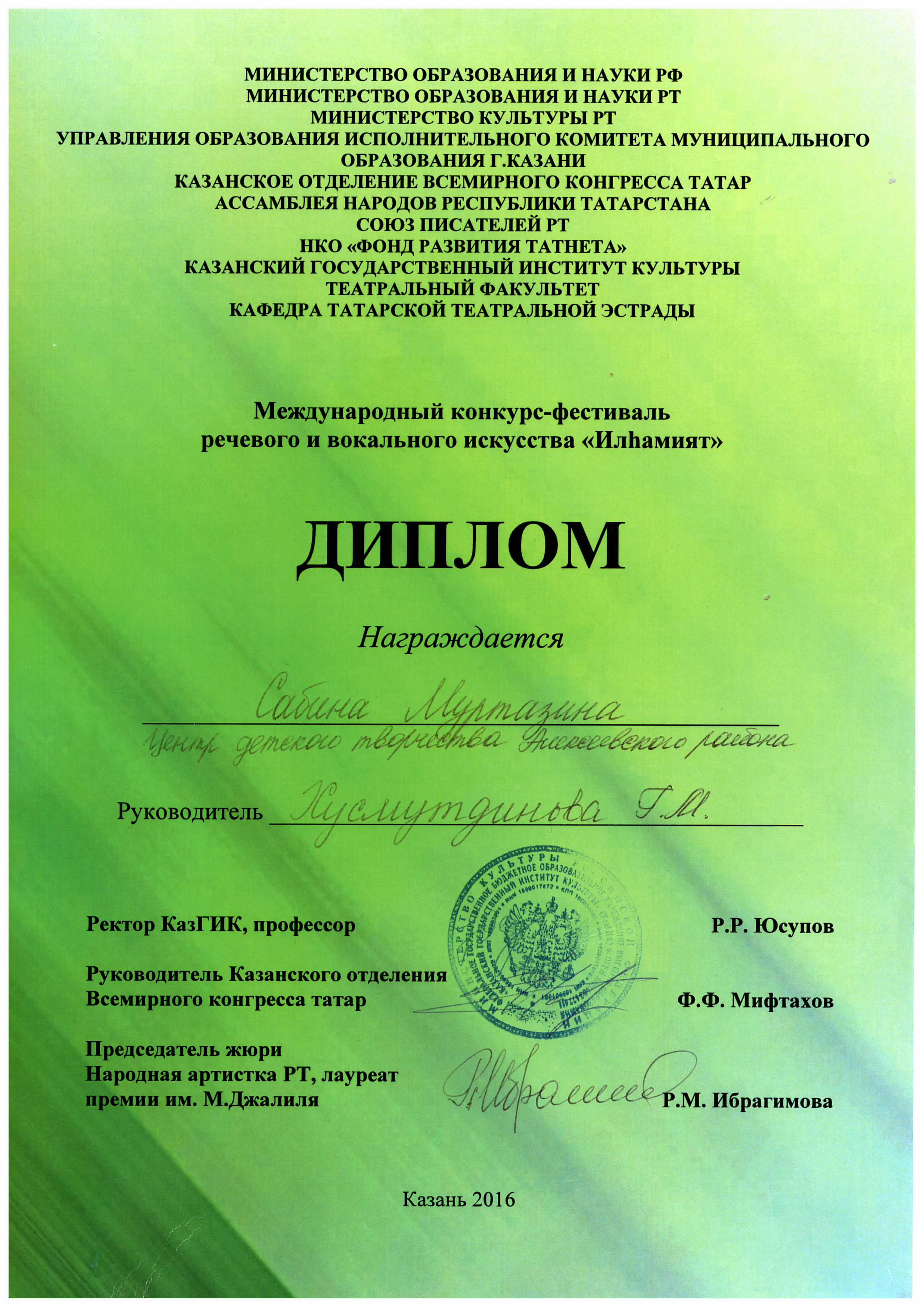 | Руководитель: | Закирова Нурия Набиулловна |