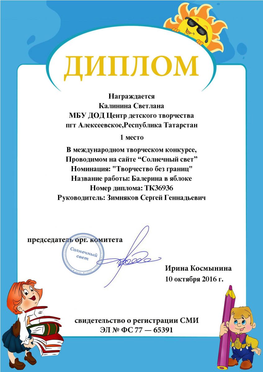 Международный_творческий_конкурс "Солнечный свет",_Калинина Света, 1 место, октябрь 2016 г.