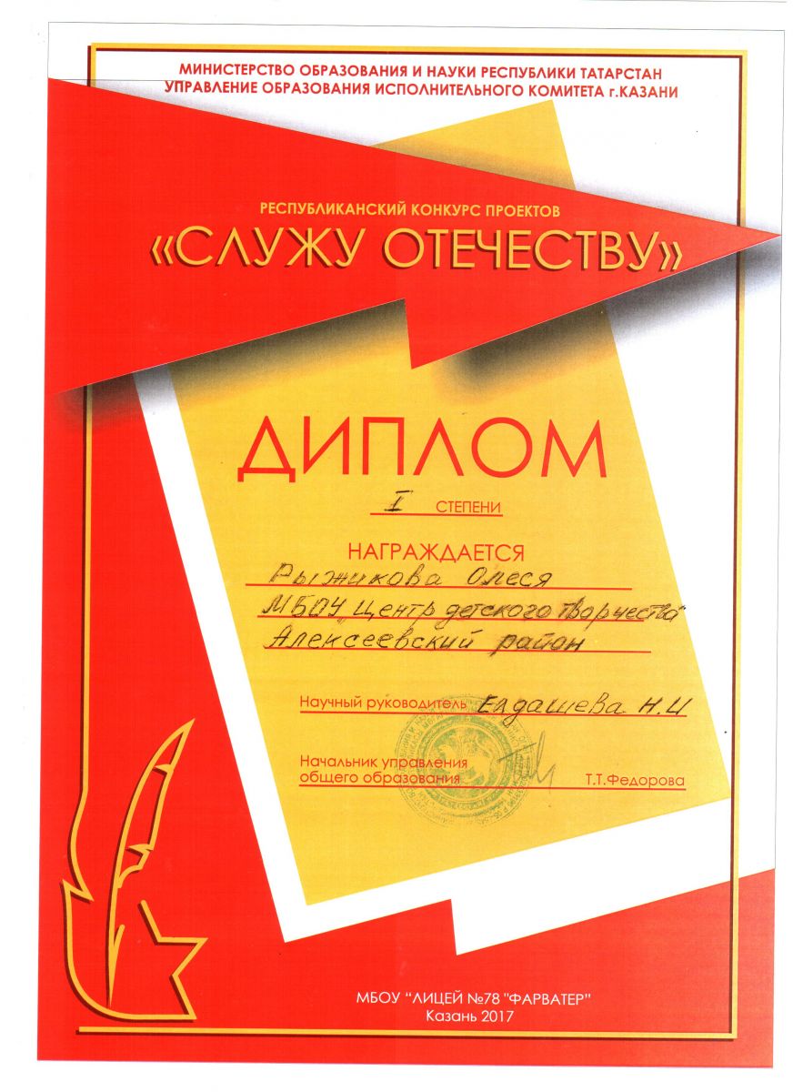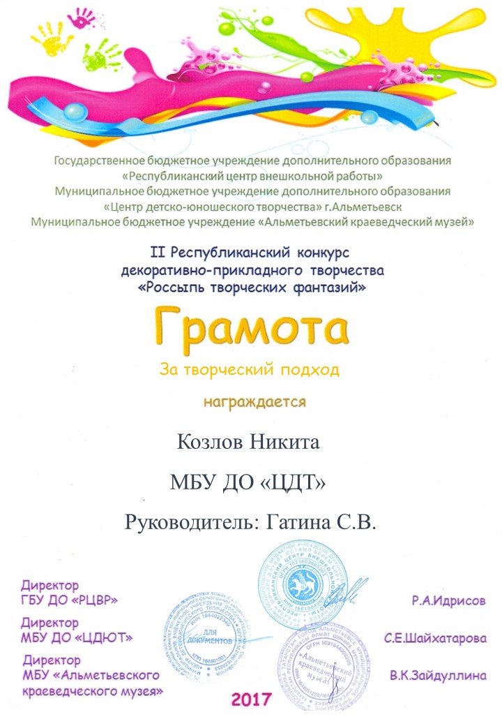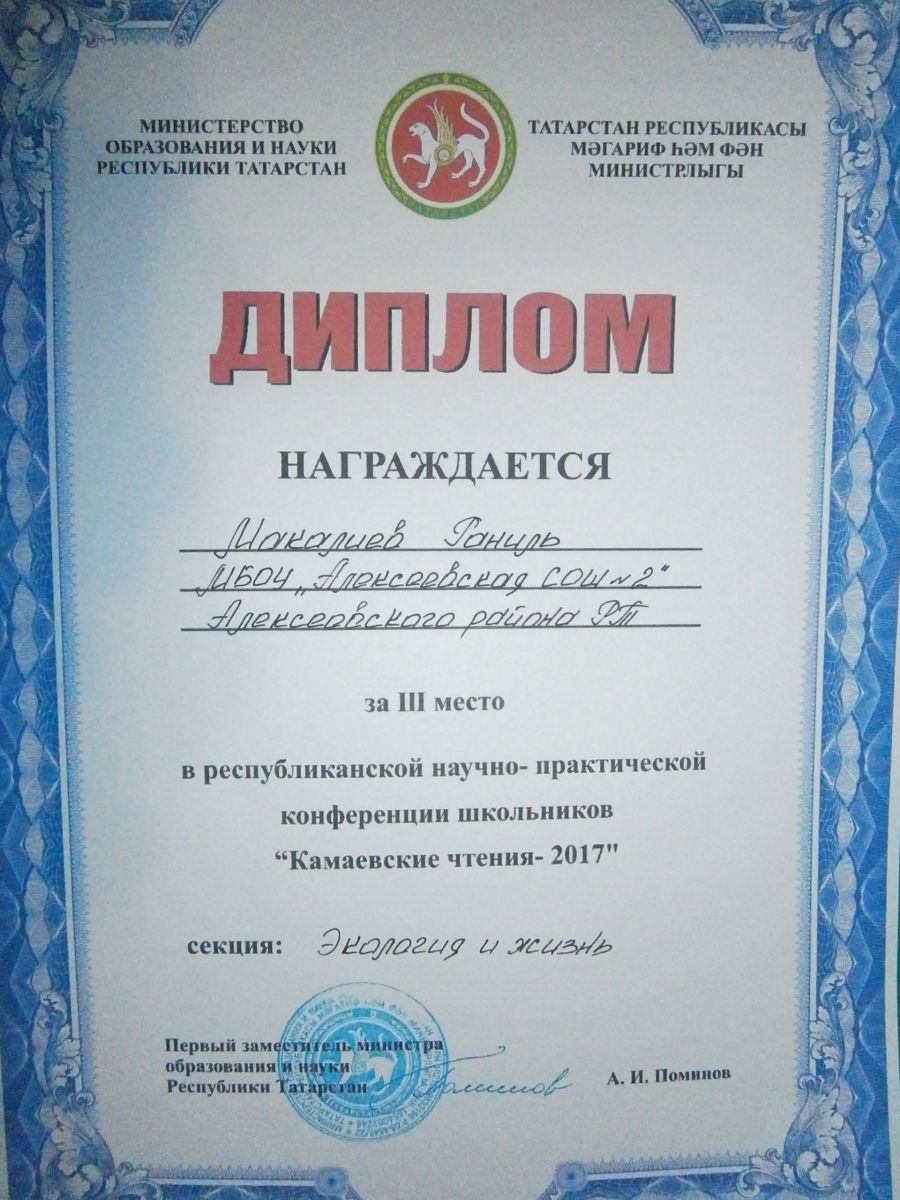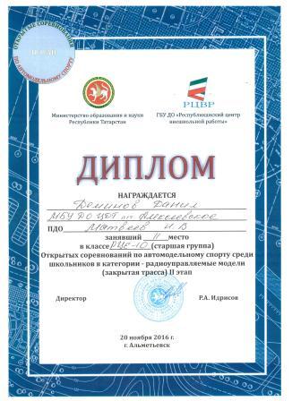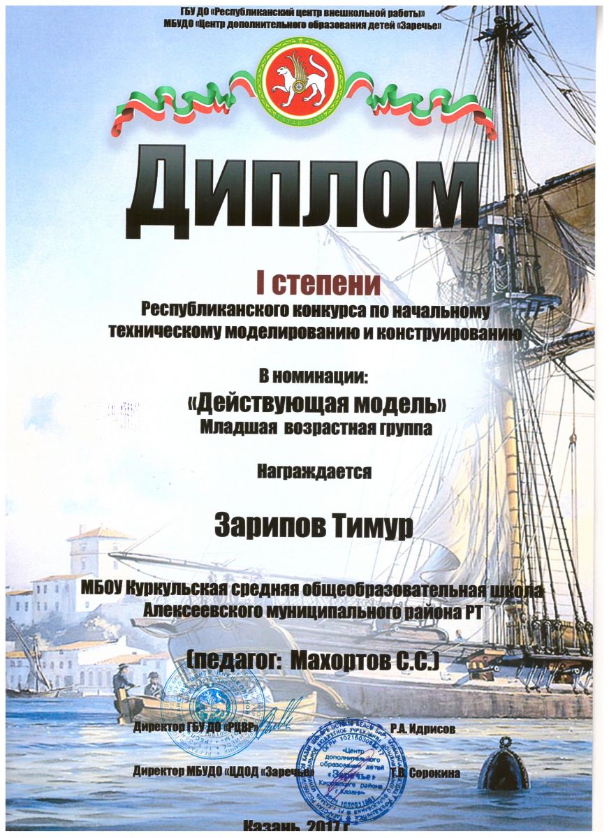 X Республиканская олимпиада юных изобретателей "Кулибины XXI", Диплом II место, май 2017 г.