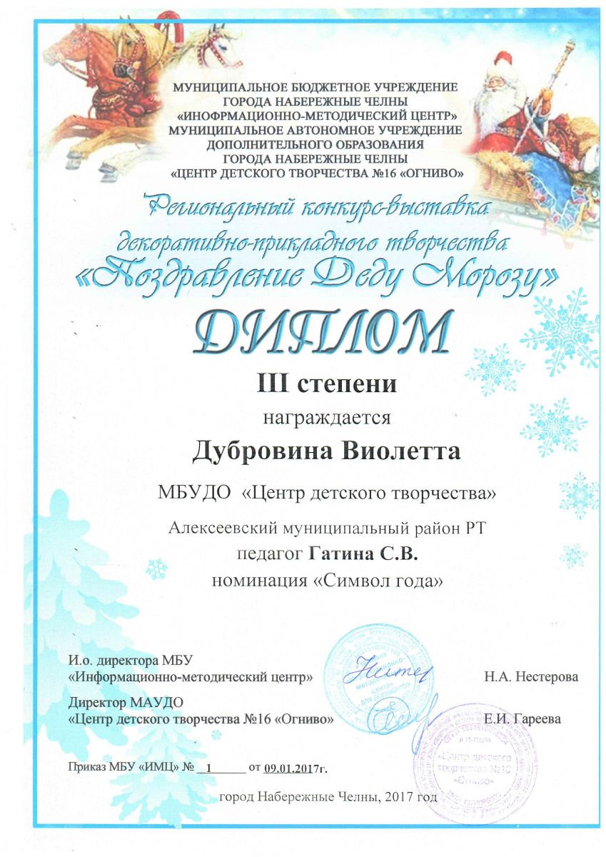 III Республиканский конкурс "Новогодняя сказка", Цыганова Ярослава, 2 место, март 2017 г.