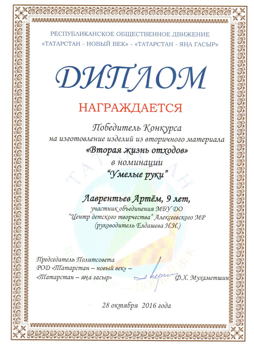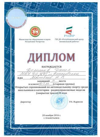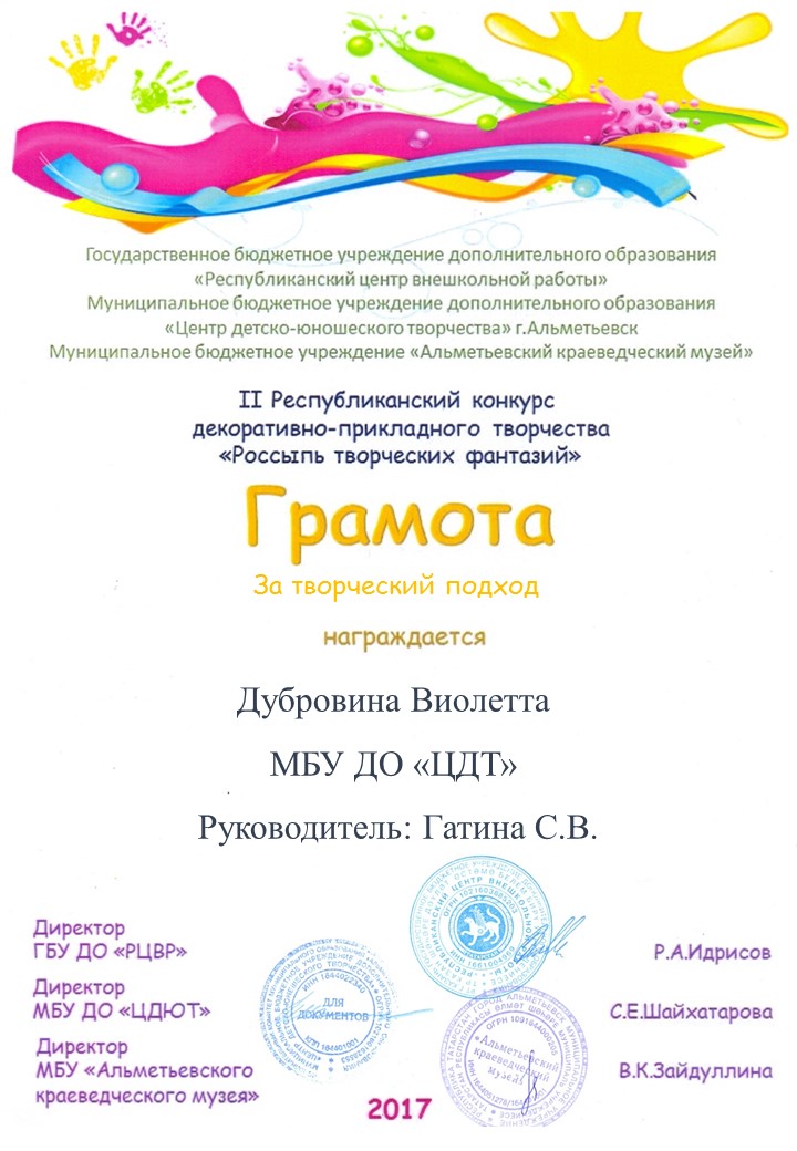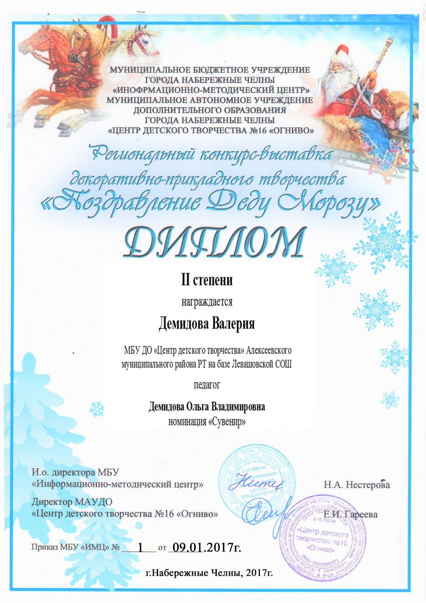 V Республиканский конкурс "Мой любимый учитель", Иванова Дарья, Диплом II степени, октярь 2016 г.