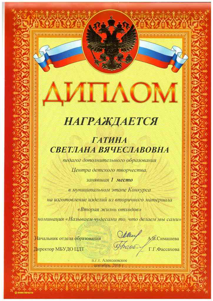 Районный конкурс "Волшебная страна цветоделия", Гатина С.В., 1 место, октябрь 2016 г.