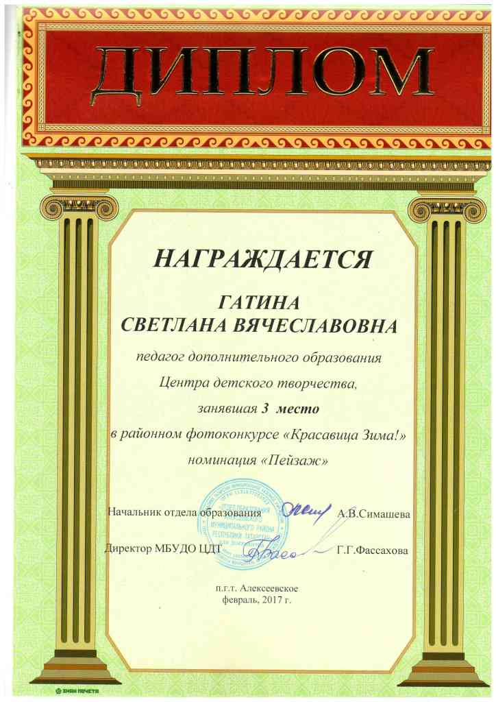 Районный конкурс "Красавица Зима!", Гатина С.В., 2 место, февраль 2017 г.