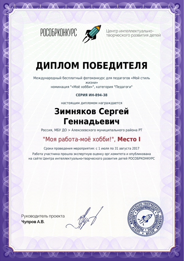 ► Международный фотоконкурс "Мой стиль жизни", Зимняков С.Г., 1 место,август 2017