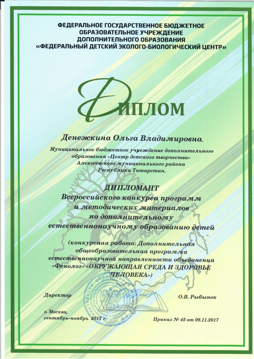 ► Всероссийский конкурс программ и методических материалов по дополнительному естественнонаучному образованию детей, Денежкина О.В., Дипломант, ноябрь 2017
