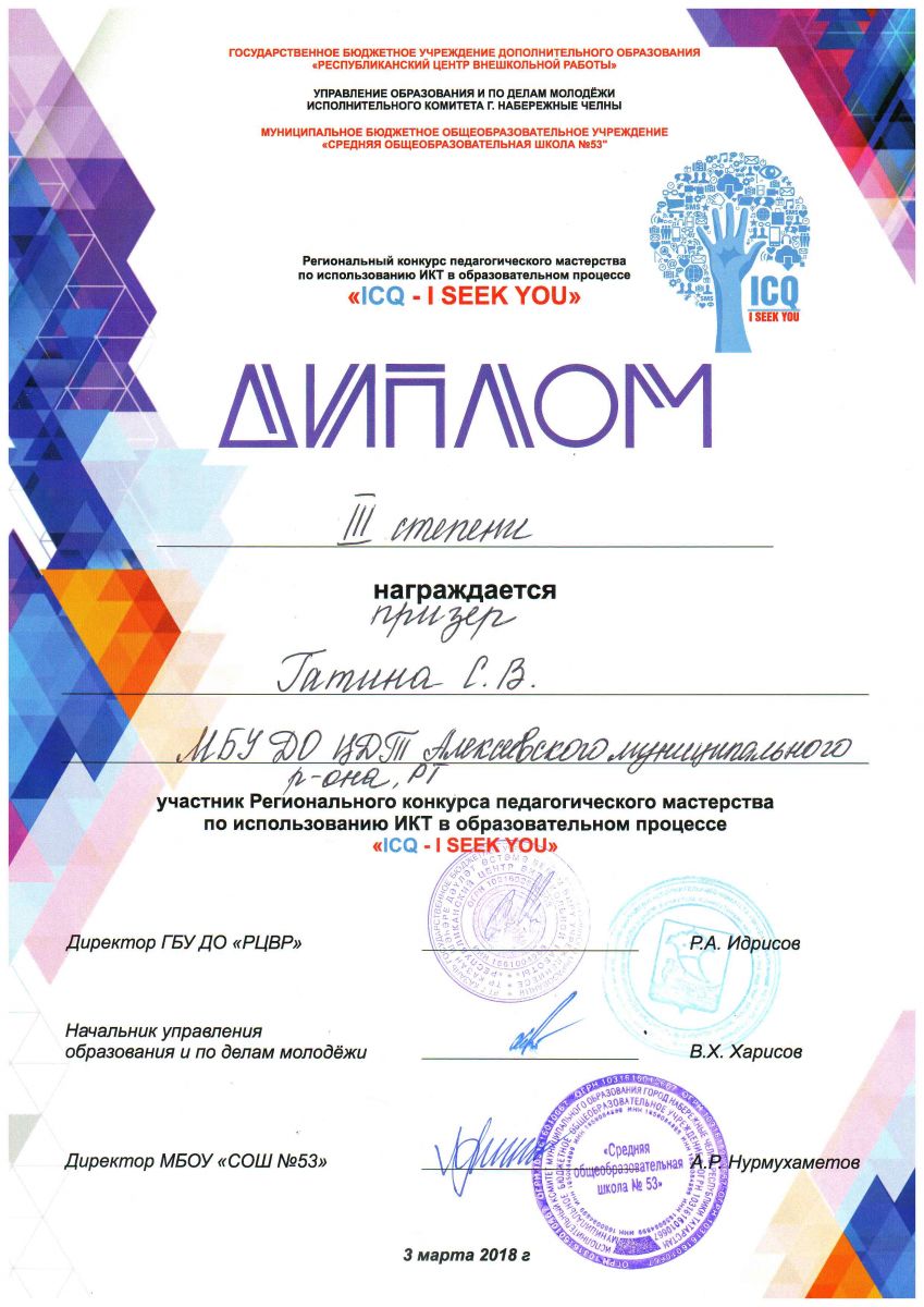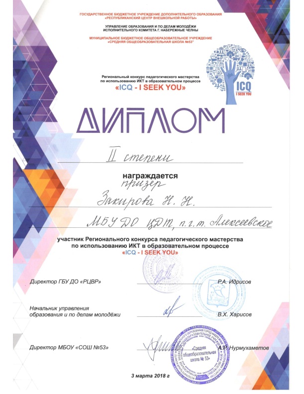 | Руководитель: | Закирова Нурия Набиулловна |