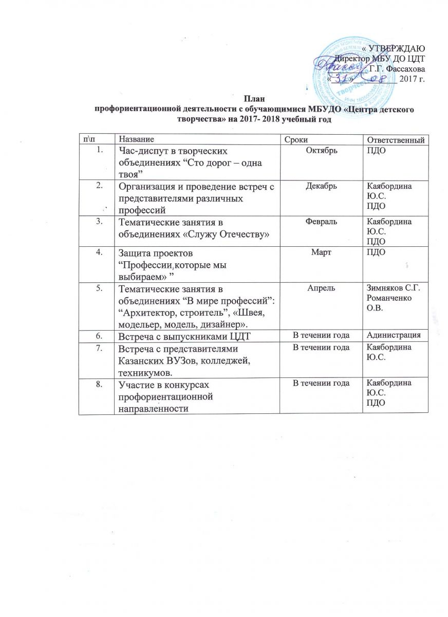 ► План профориентационной деятельности с обучающимися МБУДО ЦДТ