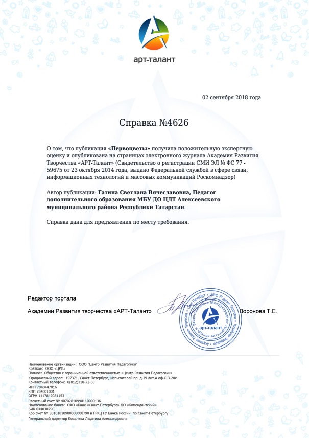 Муниципальное бюджетное учреждение дополнительного образования "Центр детского творчества" Алексеевского муниципального района Республики Татарстан / Татарстан Республикасы Алексеевск муниципаль районы «Балалар иҗат үзәге» өстәмә белем муниципаль бюджет учреждениесе