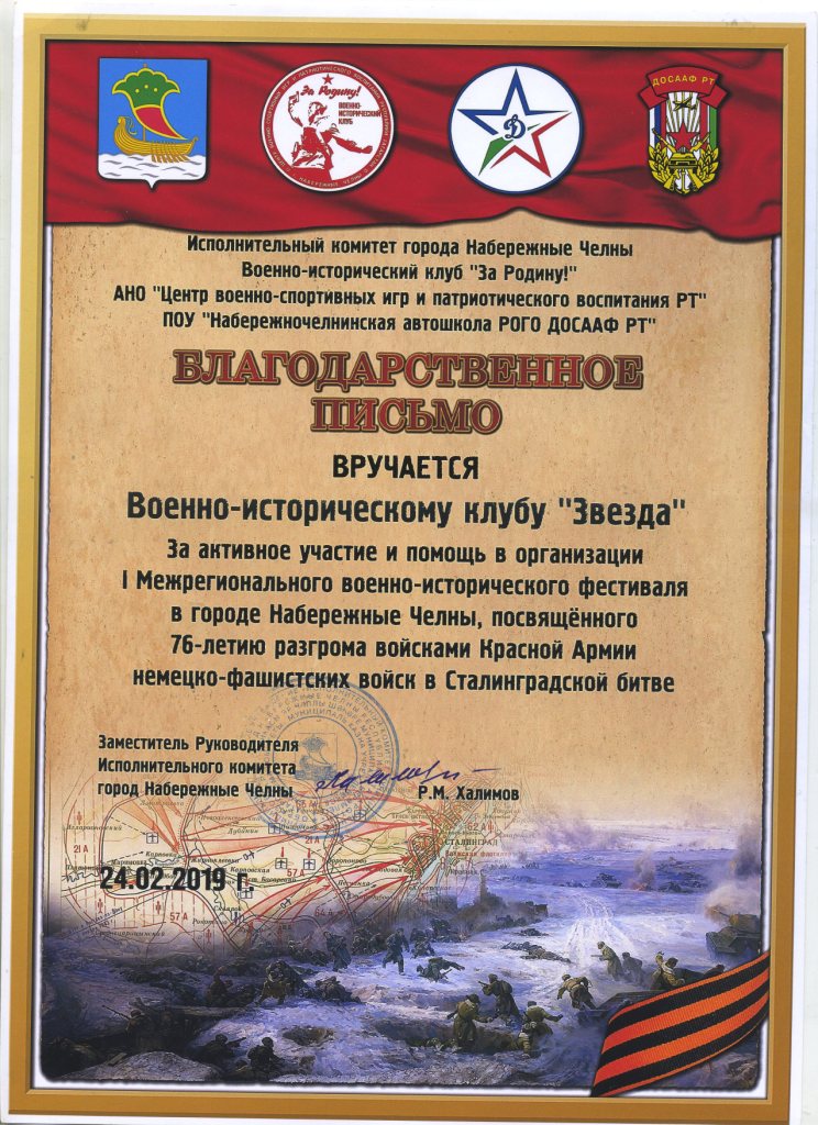 ► Первенство Республики Татарстан по волейболу среди юношей 2006-2007 г.р., Благодарственное письмо