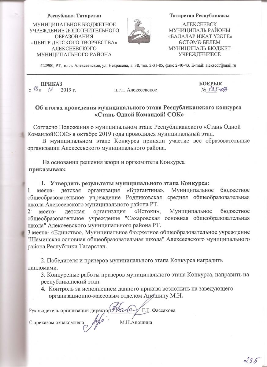 Муниципальное бюджетное учреждение дополнительного образования "Центр детского творчества" Алексеевского муниципального района Республики Татарстан / Татарстан Республикасы Алексеевск муниципаль районы «Балалар иҗат үзәге» өстәмә белем муниципаль бюджет учреждениесе