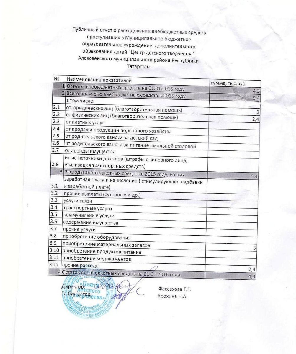 ♦ Публичный отчет о расходовании внебюджетных средств за 2015 год