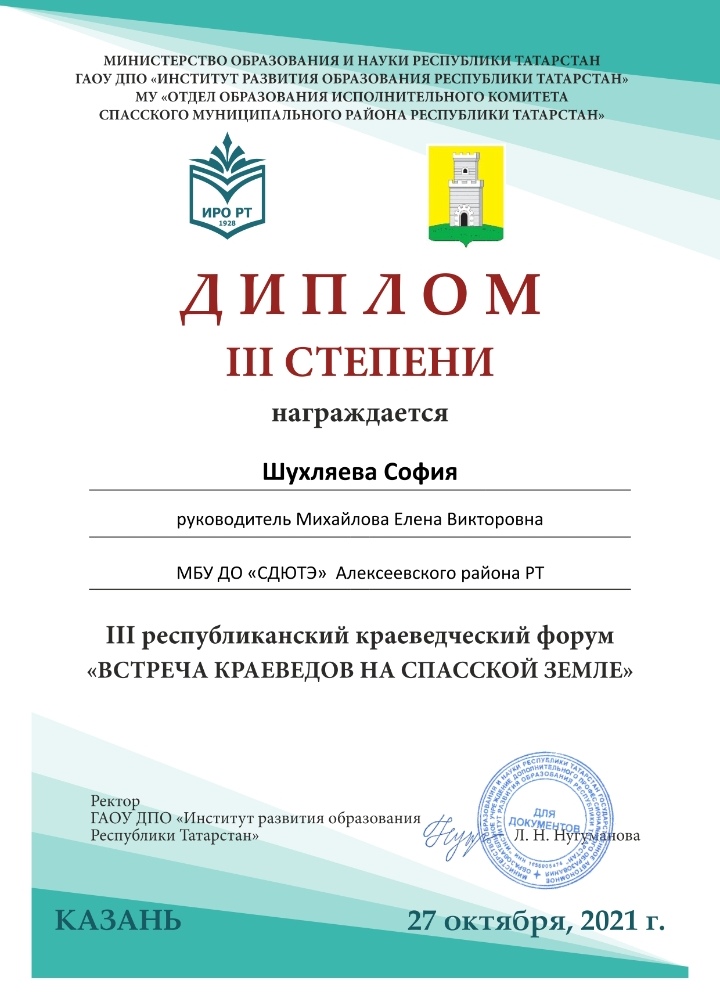 Опубликовано: 27.10.2021Поздравляем призёра Шухляеву Софию,руководитель Михайлова Е.В.Билярская СОШ