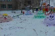 На территории школы появились сказочные герои, чтобы в предверии Новогодних праздников порадовать детей. Учителя и учащиеся школы слепили из снега любимых героев из мультфильма.