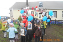 Строем правнуки и внукиПобедителей войны –Словно знамя, держат рукиФото воинов страны.Полк шагает по России,Все портреты лиц родных,Торжество идей, мессия –Полк защитников святых.