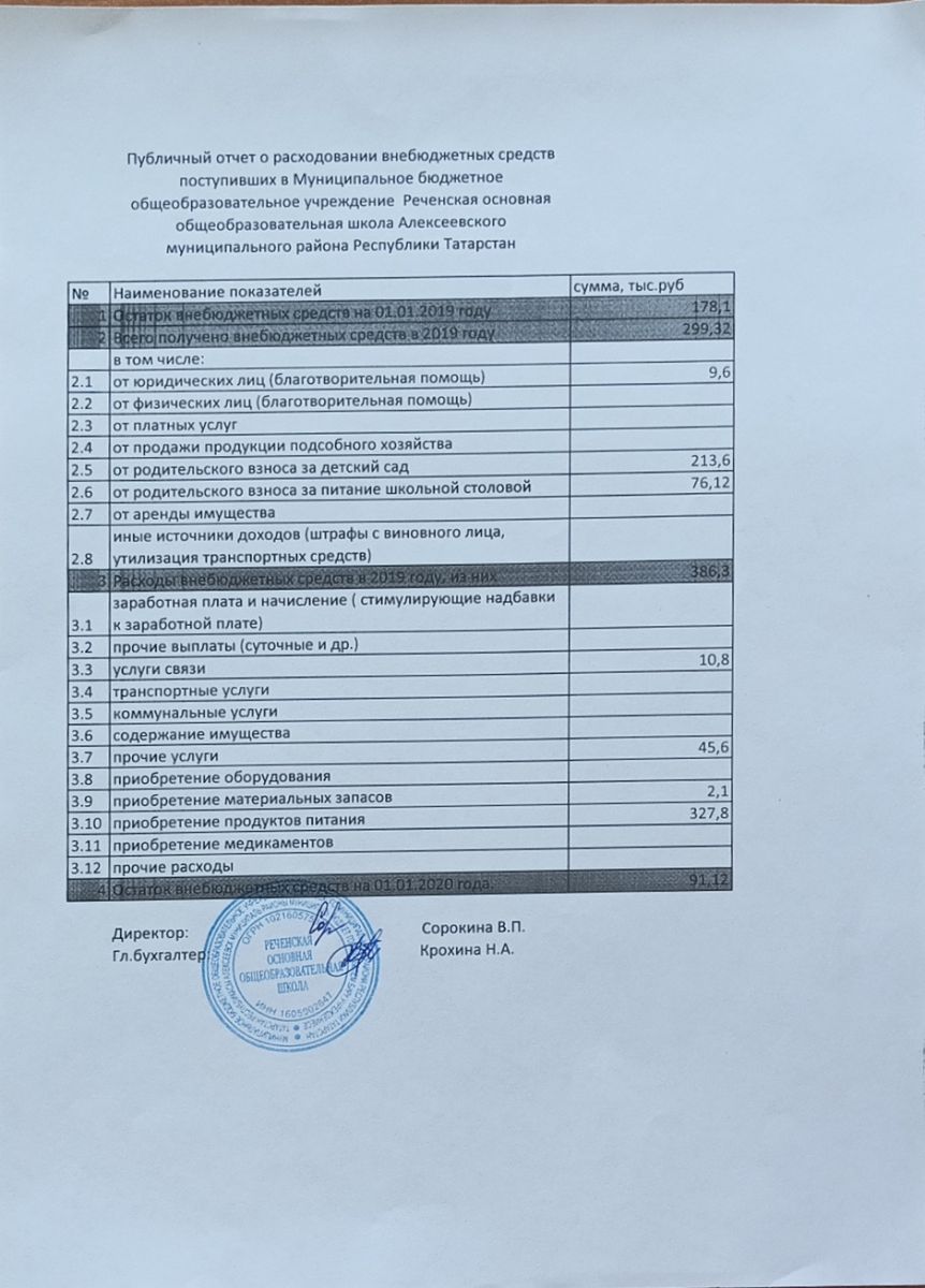 Публичный отчет о расходовании внебджетных средств 2019 год