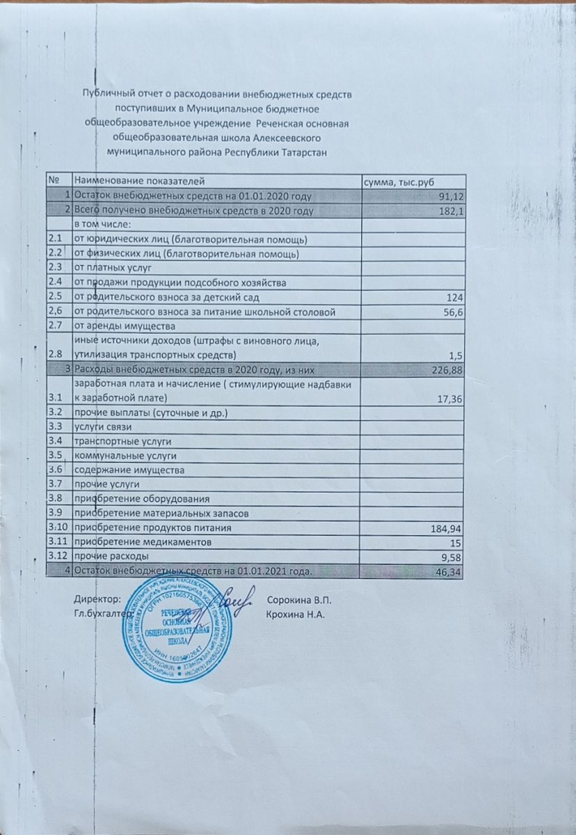 Публичный отчет о расходовании внебюджетных средств 2020 год