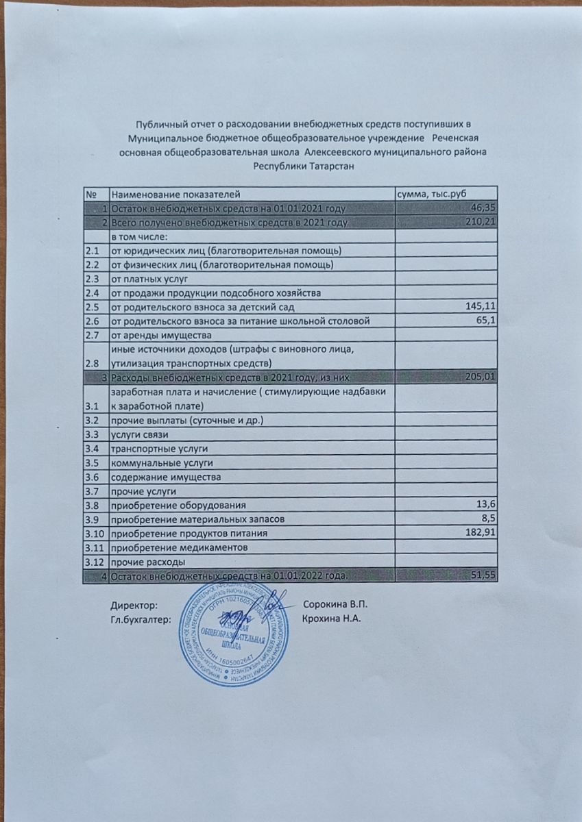 Публичный отчет о расходовании внебюджетных средств 2021 год