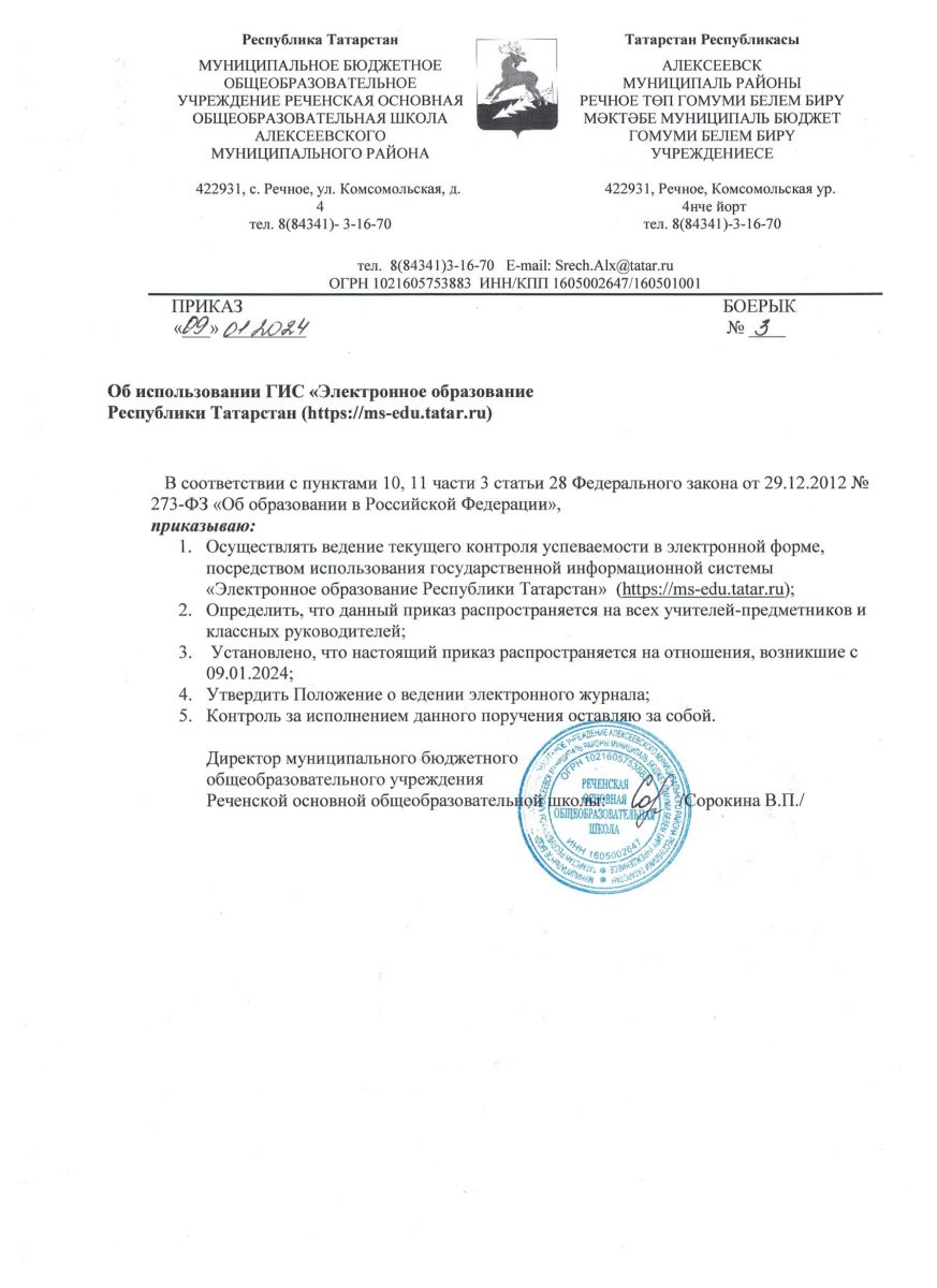 Приказ Об использовании ГИС Республики Татарстан (http://ms-edu.tatar.ru)