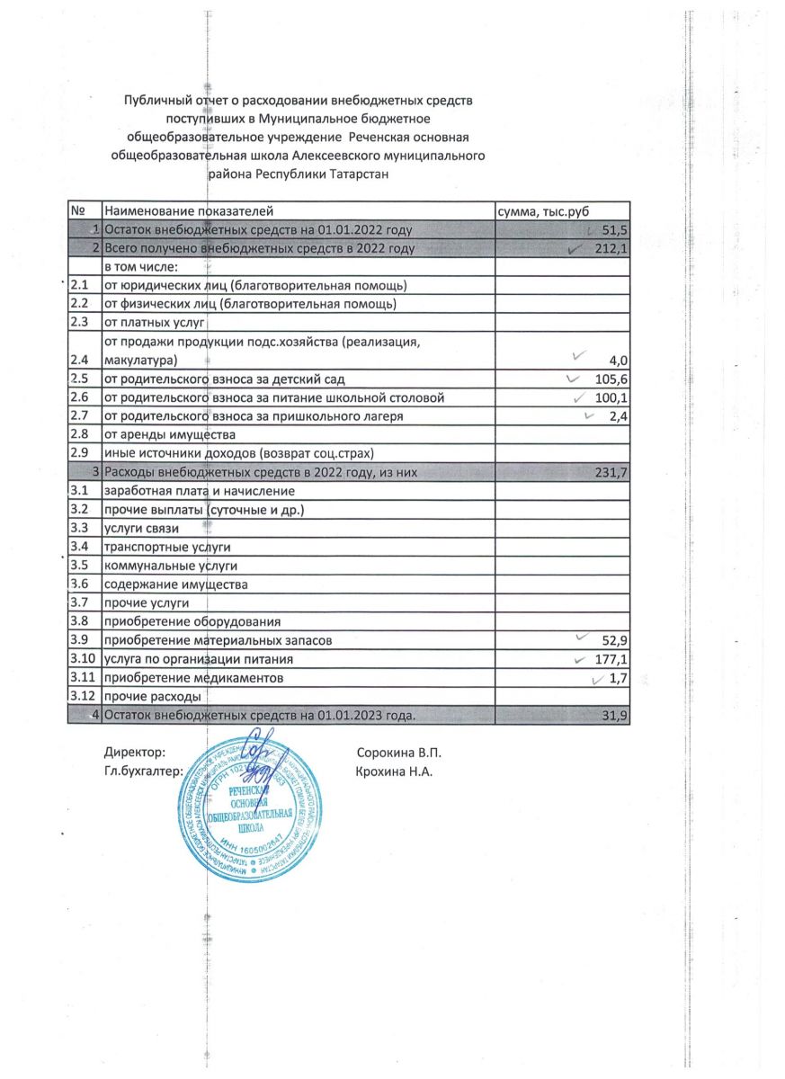Публичный отчет о расходовании внебюджетных средств 2022 год