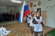Право поднять флаг было предоставлено ученицам 9 класса Антоновой Анастасии, Груниной Маргарите и ученице 11 класса Никитиной Елене. Поднятие флага сопровождалось гимном Российской Федерации.
