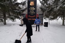 В рамках месячника военно-патриотического воспитания ребята облагородили территорию памятника, почистили дорожки и убрали снег с постамента.