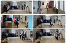 Сегодня в школе прошла ставшая традиционной торжественная церемония вноса государственного флага Российской Федерации. Почётное право внести государственный флаг было предоставлено обучающимся 9,11классов.