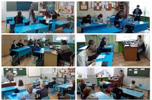 В рамках мероприятий, посвященных профориентационной работы сегодня классными руководителями были проведены классные часы о профессиях. 3-4 классы - "Мир профессий", 7 класс - Игра "Найди профессию в школе", 8 класс - Упражнение "Автопортрет" (учащимся надо нарисовать автопортрет и соотнести их с какой-либо профессией), 9, 11 класс - "Профессии, которые необходимы для обслуживания "умного дома".