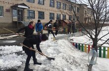 В рамках акции "Добрые дела"юнармейцы раскидали снег и собрали мусор на территории школы