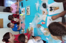 Поделки и аппликации стандартно делают из бумаги, воспитатель пришкольного лагеря труда и отдыха " Муровейник" Рахматуллина Р.Р решила пофантазировать и научить детей делать необычные изделия из не совсем обычных материалов. Ребята познакомились с новым видом для творчества – макаронами.