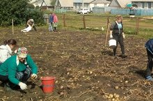 "День добрых начинаний" С 5 по 12 сентября в школе проходит акция "Осенняя неделя добра". Учащиеся школы оказали пассильную помощь труженику тыла Еркиной Е.Т, помогали убирать урожай картофеля.