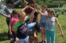 Воспитатели лагеря и сотрудники СДК сегодня устроили праздник для детей. День прошёл весело и интересно. Дети играли и соревновались между собой. Все были награждены праздничным обедом и сладкими призами.